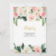 Este é um convite para chás de fraldas rústico moderno que apresenta uma coroa verde plano com florais cor-de-rosa pincelados e letras de brilho dourado