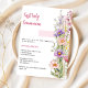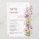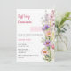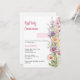 Um fundo branco, com uma grande cruz cor-de-rosa decorada com flores rosa e roxas. Personalize e adicione o nome e os detalhes.