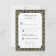 © 2019 Socialite Designs. Nosso cartão de resposta para eventos tem um belo damasco dourado falso texturizado em um fundo azul marinho (Hex - #152946) e um floreio dourado falso texturizado. Combine este cartão RSVP elegante com o convite de casamento correspondente.
