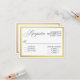 Um cartão de resposta de casamento elegantemente belo com um texto de resposta em letra cursiva em espanhol. Edite a data de resposta e outros textos como desejar. Este design inclui seleções de opções de entrada para seus convidados. Edite o texto da entrada com suas opções (ou seja, carne, frango, vegetariano, etc). Você pode excluir este bloco de texto se não precisar dele. Uma ampla borda dourada cerca o texto em estilo moderno e sofisticado.