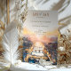 Anuncie seu próximo casamento em estilo impressionante com este convite "Salve a Data" com uma representação aquática da famosa Ponte Vecchio de Florença. Este design artístico captura o brilho romântico da noite da cidade com tons suaves de azul, ouro e terracota, fazer perfeito para um casamento de destino. A tipografia elegante complementa a sensação sonhadora, pintada à mão, fornecendo um convite que reflete a elegância do eterno e a beleza de Florença. Perfeito para casais planejando um casamento memorável na Itália, este convite é a palco de uma celebração inesquecível.