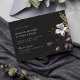 Essa extraordinária design evoca uma atmosfera de mistério e romance, perfeita para aqueles que buscam um casamento com um toque de altura boêmica. O convite mostra um espantoso fundo negro que exalta sofisticação e dá palco a uma celebração inesquecível. Adorado com uma série de florais escuros e temperados florescendo com uma mistura cativante de roxo profundo, roxas velozes, e tons de marrom sujos. Essas florescências cativantes, lembrando as flores silvestres encontradas no interior da floresta, trazem um sentido de drama e profundidade à design.