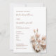 Este convite de casamento contemporâneo apresenta flores silvestres boho tridimensionais rosa bege e brancas em um fundo branco. Com sua foto e um código qr escaneável para o site do seu casamento no verso.