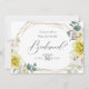 CONVITE À PROPOSTA DE PARTES BRIDAIS | Formas geométricas com tons de flores amarelas ensolaradas e magnólias de marfim e peônias escamoteadas - um quadro de terrário multifacetado, geométrico em ouro, adornado com buquês verdes e florais. O reverso é uma cor complementar coordenada. Personalizar texto, estilo de fonte, cor e tamanho. Arte original criada para o BarefootBride™ por © WhimsicalArtwork™ - Esta é parte de um Conjunto completo de Artes de Casamento, chá de fraldas e outros artigos de papelaria para eventos semelhantes.