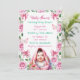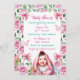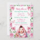 Bonita personalização do chá de bebê da floral com uma menina pequena sob um cobertor floral. Bonito rosas rosa botânica e folhas verdes com aspecto aquoso.
