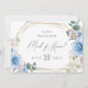 CONVITE À PROPOSTA DE PARTES BRIDAIS | Formas geométricas com tons de magnólias e peões de marfim, azuis e escamoteados, de cor azul-bebê e escamoteados - moldura geométrica do tipo terrário multifacetada dourada, enfeitada com buquês verdes e florais. O reverso é uma cor complementar coordenada. Personalizar texto, estilo de fonte, cor e tamanho. Arte original criada para o BarefootBride™ por © WhimsicalArtwork™ - Esta é parte de um Conjunto completo de Artes de Casamento, chá de fraldas e outros artigos de papelaria para eventos semelhantes.