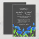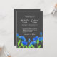 Flores silvestres de cor aquática azul moderna. Casamento de na moda. Convite preto elegante e flexível. Escolha de tendências para casamentos de verão.