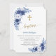 Convites Flores Azuis Clássicas Modernas Cruzam Batismo