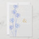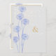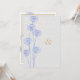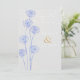 Um convite elegante para o casamento, com lindas flores azuis, com um círculo azul ligeiramente transparente sobre um fundo de cinza leve e a ilusão de luzes cintilantes. Dá a ilusão do nome da noiva e do noivo na frente de ser gravado.