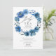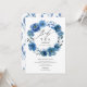 Belo convite para chá de chá de fraldas com uma bela cor d'água, indigo marinho, coroa azul, coroa floral, com uma folha coordenadora para um toque especial extra.