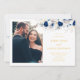 O Convite para Casamento de Fotos Amarelo e Flores Azuis do Marinho Moderno mostra uma combinação impressionante de flores azuis marinhos e sotaques amarelos vibrantes, maravilhosamente enquadrado por uma acalentada foto do casal. Este design contemporâneo combina cores ousadas com toques pessoais, criando um convite impressionante e memorável. Ideal para um casamento moderno, ele dá um tom sofisticado enquanto destaca seus momentos especiais.
