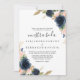 Felicite o seu casamento russo espanhol com este convite para o boda de flores azuis e cor-de-rosa. A design apresenta flores douradas, cor-de-rosa, pinceladas, azuis e marinhos com folhas verdes.