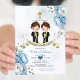 Flores Azuis Dusty Gêmeos espanhóis Primera Comuniale Convite