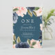 Este marinho de flores azuis e coroa azul é perfeito para uma festa de aniversário floral. O clássico e elegante design apresenta marinho de aquarela azul e flores cor-de-rosa pinceladas sobre fundo azul-lacrimogêneo.