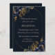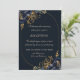 Flores azuis marinhos elegantes com folhas de ouro sobre fundo azul marinho. Para alterar os detalhes, clique em "Detalhes". Para mover o texto ou alterar o tamanho, a fonte ou a cor, clique em "Editar usando a Ferramenta de Design". Visualize o link de coleção nesta página para ver todos os itens correspondentes nesta bela design.