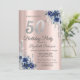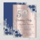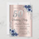 Convites Flores Azuis Glitter Drips Rosa Dourado 50º Aniver