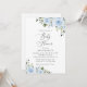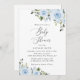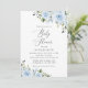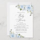 Convide amigos e família de estilo e dê o tom para seu dia especial com este charmoso convite para chás de fraldas. Design apresenta flores azuis poeirentas de cor d'água e verde sobre fundo branco.