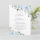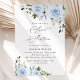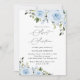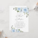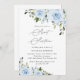 Convide amigos e família de estilo e dê o tom para o seu dia especial com este charmoso convite de aniversário. Design apresenta flores azuis poeirentas de cor d'água e verde sobre fundo branco.