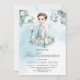 Design de Whimsical para Boy First Communance apresenta buquê Lavish de azul empoeirado e flores brancas misturadas folhas verdes sábias, que elegantemente envolve o menino bonitinho em trajes religiosos formais, como um abraço de mamãe macio. Tipografia desenhada à mão. Não hesite em contactar-me para obter itens ou personalizações correspondentes. Rosas de cor Bebê ©