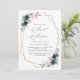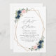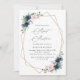 Convide amigos e família de estilo e dê o tom para o seu dia especial com este charmoso convite de aniversário. Design apresenta marinho e flores cor-de-água cor-de-rosa-claro, verde e estrutura dourada sobre fundo branco.