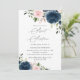 Convide amigos e família de estilo e dê o tom para o seu dia especial com este charmoso convite de aniversário. Design apresenta marinho e flores cor-de-água cor-de-rosa pinceladas e verde sobre fundo branco.