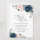 Convide amigos e família em estilo e dê o tom para seu dia especial com este encantador convite para o casamento. Design apresenta marinho e flores cor-de-água cor-de-rosa pinceladas e verde sobre fundo branco.