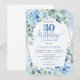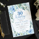 Convites Flores azuis romanas eucalipto e 30 prateado