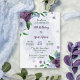 Bonito convite de aniversário romântico com flores azuis e roxas empoeiradas e algumas folhas verdes. PARA MAIS PRODUTOS CORRESPONDENTES, clique na coleção acima ou entre em contato comigo