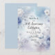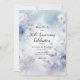 Os florais de aquarelas suaves em tons sonhentos de azul e lavanda fazem deste convite uma escolha espantosa para qualquer ocasião especial. Quer você esteja planejando um chá de fraldas, uma celebração de aniversário ou uma festa elegante de janto, este design adiciona um toque de graça e serenidade ao seu evento. Os delicados detalhes florais e tons pastéis criam um aspecto eterno que é sofisticado e convidativo. Totalmente personalizável para o seu encontro exclusivo.