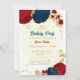 Convites flores azuis vermelhas e marinhos ouro folhas aniv