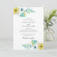 Convite de casamento com flores azuis e amarelas. Entre em contato comigo, por favor, se precisar de itens adicionais.