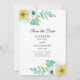 Salve a data com flores azuis e amarelas. Entre em contato comigo, por favor, se precisar de itens adicionais.