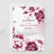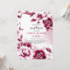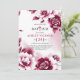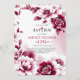 Burgundy floral de lavagem de aquarelas convite de batismo. Este convite é enfeitado com um embelezamento floral inspirado em porcelana. Lindas flores de pedônia renderizadas no estilo da pintura tradicional de tinta, em cascata com fluidez graciosa. Uma paleta de burgundy rica e rosa domina pontuada por realces brancos nítidos que captam a luz. Este elegante design enquadra os cantos do convite, criando uma harmonia visual que deixa espaço para seus detalhes personalizados de casamento serem lindamente exibidos. A letra "T" na palavra "BAPTISM" é substituída por uma cruz. Há também uma lavagem de aquarela cor-de-rosa. O fundo apresenta um padrão floral.