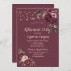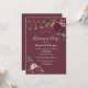 Flores de borgonha, e luzes de cordas em fundo burgundy. Divirta-se na sua festa de aposentadoria com este convite elegante. Convide seus convidados para levantar um copo e se unir à diversão com estes convites festivos.