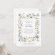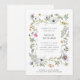 Estes convites de chuvas de bebês brancos apresentam um quadro de flores e folhas verdes, cor-de-rosa, laranja, púrpura e branca, ilustradas e coloridas, sobre fundo branco. Um design simples que é simultaneamente boho e elegante.
