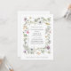 Estes casais brancos, convites para chás de casamento, apresentam um quadro de flores e folhas verdes, cor-de-rosa, laranja, púrpura e branca, ilustradas e coloridas, sobre fundo branco. Um simples design de chá de casamento que é simultaneamente boho e elegante.