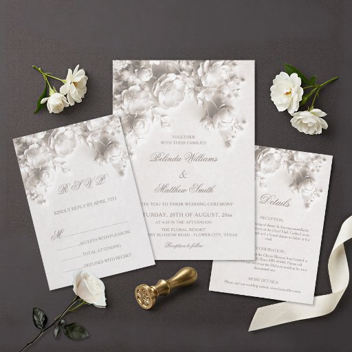 Convites Flores Brancas 3D Casamento Vintage