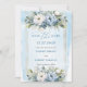 Convites Flores Brancas Azuis Pastel Caprichosas com Dourad