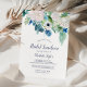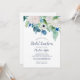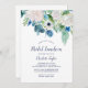 Este clássico convite para o almoço de noiva de flores brancas é perfeito para um chá de casamento na primavera. O elegante design floral apresenta marfim macio e rosas brancas, peonias e crisântemo com toques de flores azuis de cor azul-rosada e folhagem verde.