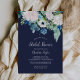 Este chá de panela clássico de marinho de flores brancas é perfeito para um chá casamento outono. O elegante design floral apresenta marfim macio e rosas brancas, peonias e crisântemo com toques de flores azuis e de aquarela azul-piscadela e folhagem verde sobre fundo azul escuro.