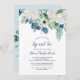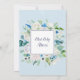 Este clássico convite para ver flores brancas é perfeito para um primavera. O elegante design floral apresenta marfim macio e rosas brancas, peonias e crisântemo com toques de flores azuis de cor azul-rosada e folhagem verde.