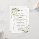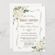 Design de cartão elegante, com flores brancas delicadas e folhas verdes, cor d'água, uma falso estrutura dourada, divisor floral, sobre fundo branco. No buquê das flores brancas, divisor floral, iniciais. Use a ferramenta Personalizar para adicionar suas informações, alterar fontes, cores da fonte. Para obter itens correspondentes, visite minha coleção de flores brancas delicadas.