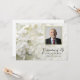 Convide os convidados a lembrar-se do seu amado após a sua morte com a elegante Celebração das Flores de Hydrangea Branca do Convite à Vida. Este bonito tributo personalizado à morte, convidado, apresenta uma fotografia floral próxima dos florais brancos da flor da hydrangea.