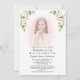 Design de cartão único e elegante, com flores brancas delicadas, cor d'água, fotos desbotadas, na parte de trás, fotos normais e flores; tudo sobre fundo branco. Use a ferramenta Personalizar para adicionar suas informações. Para encontrar itens, por favor, visite a minha Comemoração da Compaixão da Vida Obrigado Coleção.