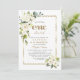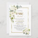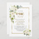 Design de cartão elegante, com flores delicadas de creme branco e folhas verdes, cor d'água, uma falso estrutura dourada, uma moderna e falsa escrita dourada "ONEMaravilhoso", sobre fundo branco. Use a ferramenta Personalizar para adicionar suas informações, alterar fontes, cores da fonte. Para obter itens correspondentes, visite minha Coleção de Festas Batismo e primeiro aniversario.