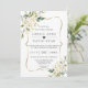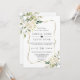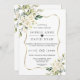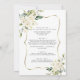 TUDO EM UM SÓ convite. Ao incluir os detalhes e o RSVP (opcional) na parte traseira do convite de casamento, em vez de em um cartão de gabinete separado, você pode salvar papel. Design de cartão elegante com flores brancas delicadas de cor d'água, folhagem de eucalipto, falso quadro de ouro, tudo sobre fundo branco. Use a ferramenta Personalizar para adicionar suas informações. Para itens correspondentes, por favor, visite minha Coleção de Sangue de Flores Brancas.