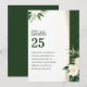 Um arranjo requintado de flores brancas, complementado por um verde-luxuoso, é graciosamente acentuado com uma faixa de gradiente de ouro e reforçado por um damasco verde no lado direito