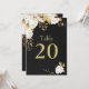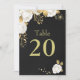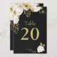 cartão de número de tabela personalizável elegante flores brancas de cartão com algumas folhas douradas cartão de número de tabela preta
