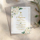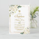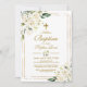 Convite personalizado impresso e acessível para batismo de bebê. Este lindo desenho tem flores brancas em aquarela com moldura dourada. Personalize o design com os detalhes da festa de batismo do seu filho. O verso tem uma cruz dourada com flores de aquarela ou use o espaço para adicionar texto e fotos adicionais. Clique em Personalizar para escolher qualquer cor de fundo e editar as fontes e cores do texto para criar um convite de batismo único e exclusivo para sua menina.