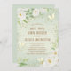 Bonito convite para chás de fraldas de quintal com flores brancas bonito e verde em fundo verde macio e creme com borboletas e brilho de ouro brilhante. Este convite funcionaria bem para um chá de fraldas de menina ou de menino. Entre em contato conosco para obter ajuda com a personalização ou para solicitar produtos correspondentes.